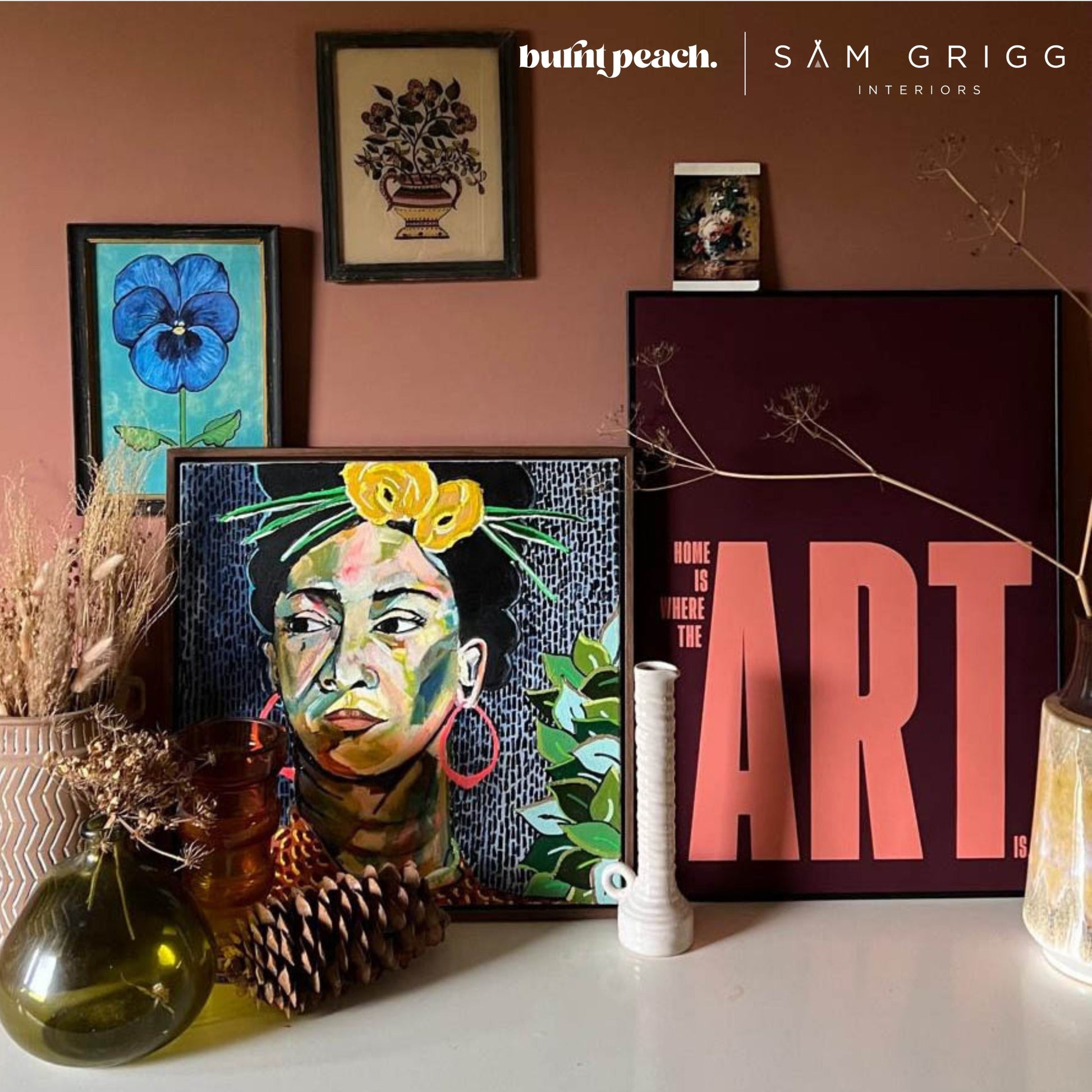 Exclusive collaboration print by Burnt Peach X Sam Grigg: “Home is where the Art is”. A saying that sums up the belief that our homes should be inspiring spaces where we express ourselves creatively - filling them with both our own art and those of others, full of personality and character.
