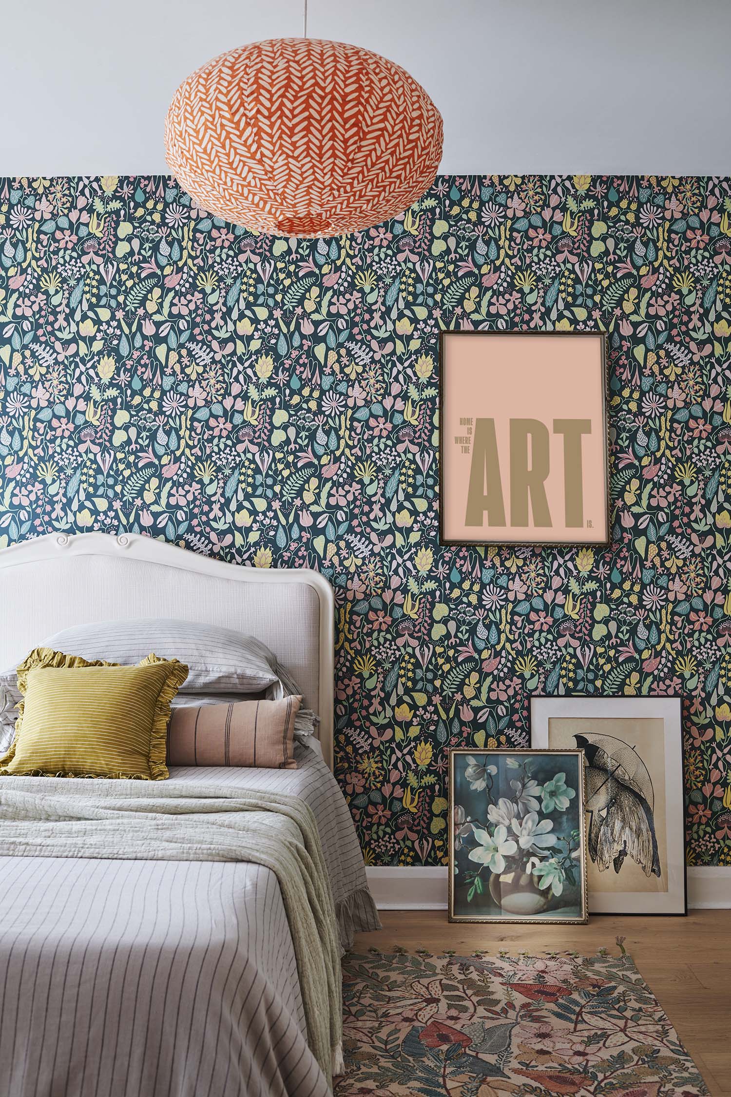 - On a patterned wallpaper that has any of these colours running through it as the prints will not compete with the paper, but will bring out the beauty of the colours already within the design.