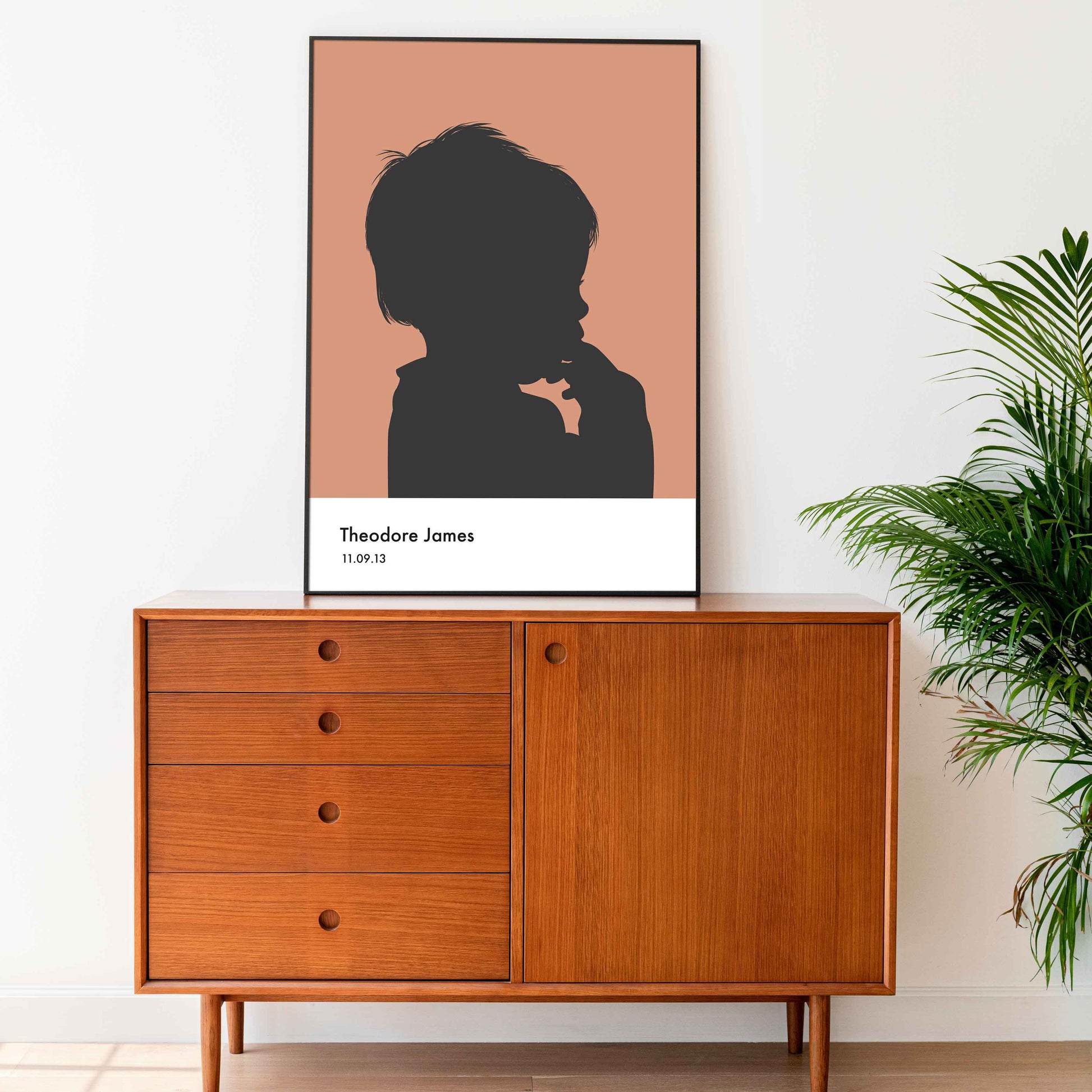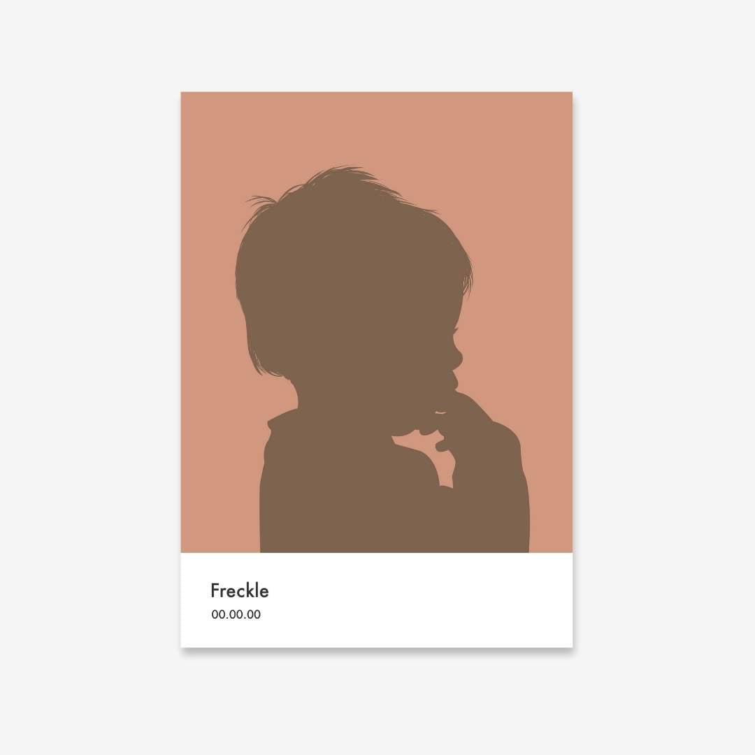 A modern take on paint swatches, the Little Peach Paint Collection transforms your child’s silhouette into bold, minimalist art — clean lines, graphic colour, and a name that means more than any paint shade.