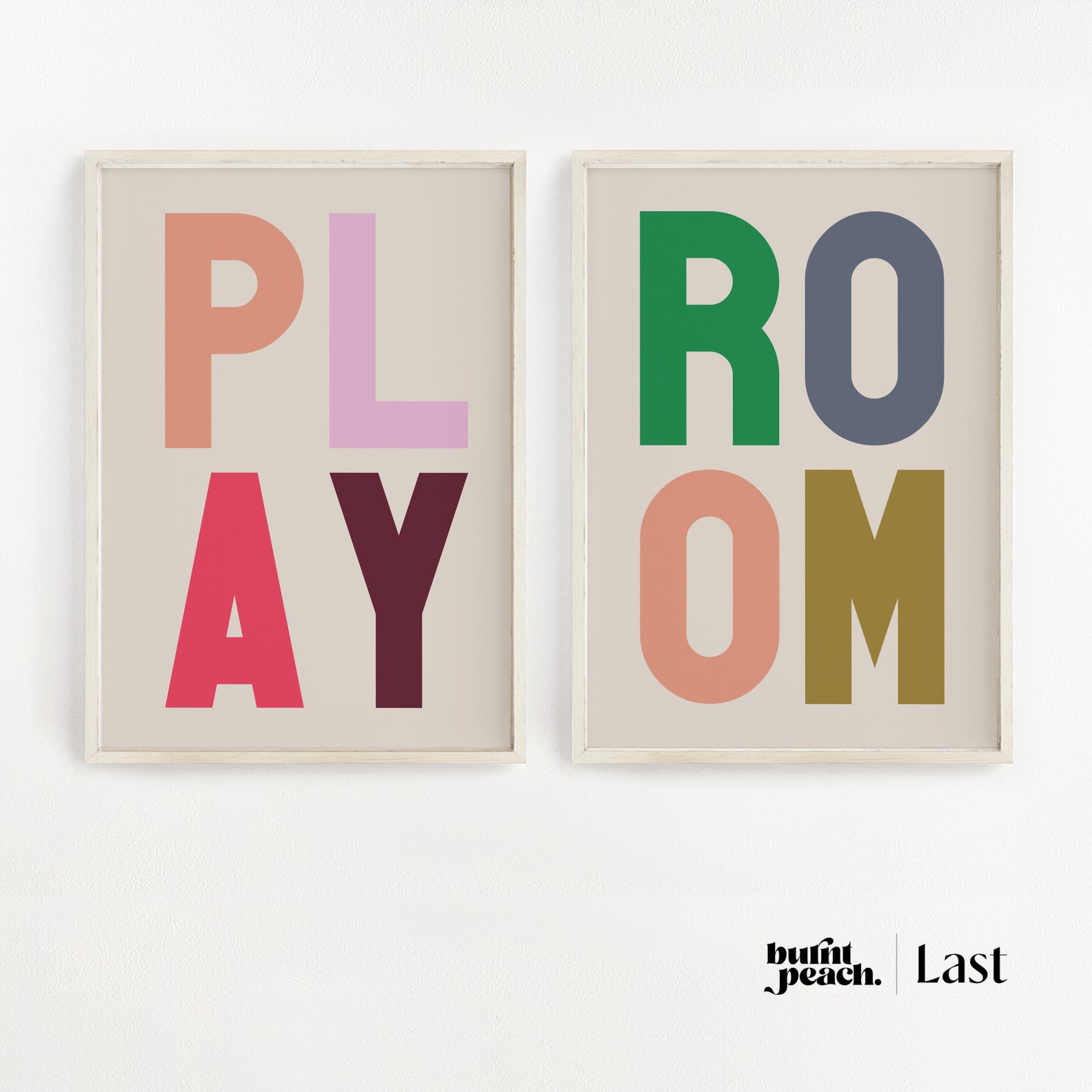 Add some stylish fun to your playroom or grown-up space with our “PLAY” and “ROOM” prints.