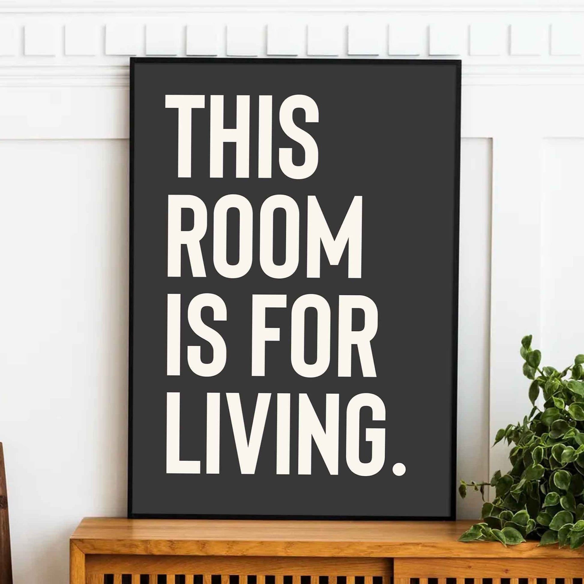If there is one print that sums up home life, we think this is it. Life isn't always picture perfect, ignore the chaos because this room is for living.
