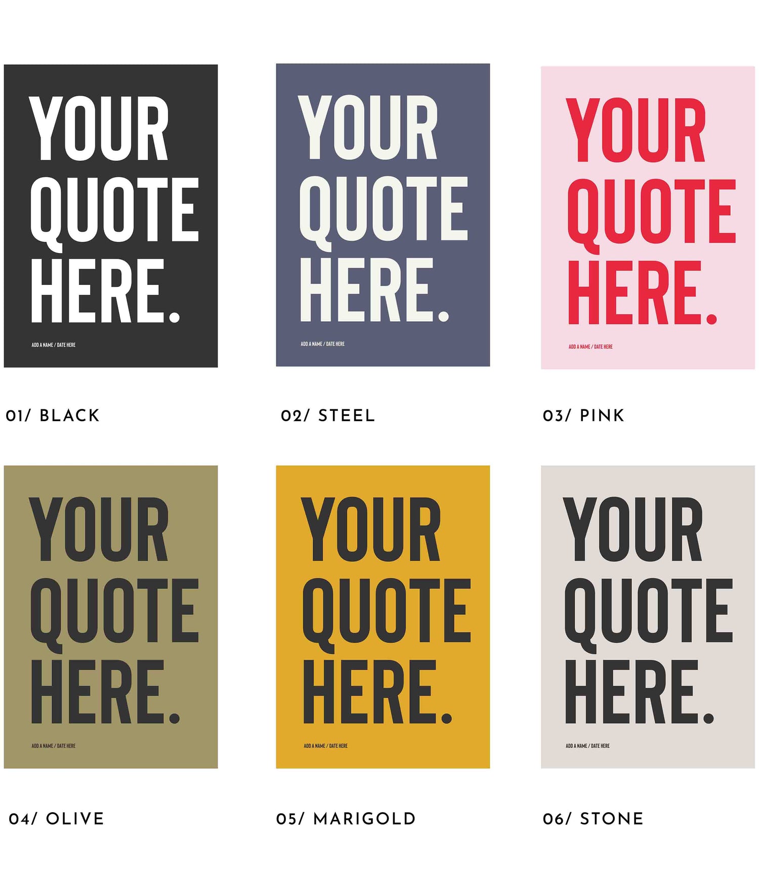 - Choose from our selection of colours and fonts below to create your unique wall art.